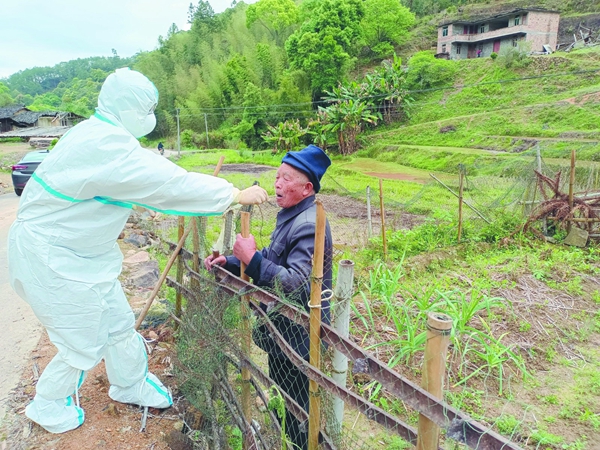 疫情防控期間,賴其樹主動請纓加入抗“疫”一線,每次上門服務(wù)的隊伍中都少不了他的身影,他說:“我在這里5年了,每一戶都很熟悉,那些老人家看到我,比較親切,會更配合一些?!薄澳睦镄枰腿ツ睦?。”賴秀崇提到賴其樹止不住地夸贊。(瓷都德化)