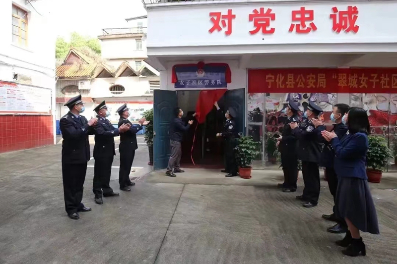 文明風(fēng)4月21日訊 4月19日上午,寧化縣公安局“翠城女子社區(qū)警務(wù)隊”揭牌儀式在翠江派出所舉行,寧化縣副縣長、公安局局長湯有芬同志出席并講話,縣文明辦主任范衍荷,縣婦聯(lián)黨組書記、主席廖德華,翠江鎮(zhèn)黨委副書記、鎮(zhèn)長張清山等領(lǐng)導(dǎo),女子社區(qū)警務(wù)隊全體民警、輔警共計20余人參加儀式。