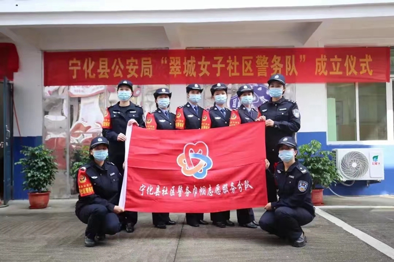 “寧化縣社區(qū)警務(wù)巾幗志愿服務(wù)分隊”合影
