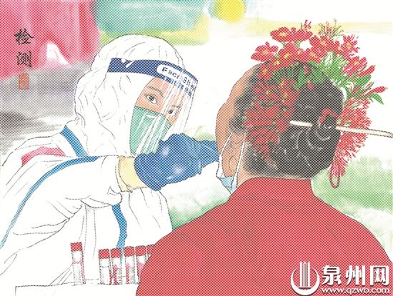 永春縣錦斗中心小學(xué)副校長(zhǎng)、永春縣美術(shù)家協(xié)會(huì)主席黃惠芬以中國(guó)傳統(tǒng)繪畫(huà)記錄那些可敬、可愛(ài)的身影。在《山河無(wú)恙,人間皆安》畫(huà)作中,黃惠芬利用墨的濃淡、干濕等層次變化,勾勒出體溫檢測(cè)、核酸檢測(cè)、日常消殺等畫(huà)面,展現(xiàn)醫(yī)護(hù)人員的無(wú)畏氣概。(泉州晚報(bào)記者 曾廣太 通訊員 林寶旋 文/圖)