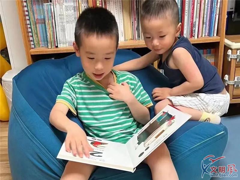 哥哥給弟弟繪聲繪色地講起了繪本。嶼后社區(qū)供圖