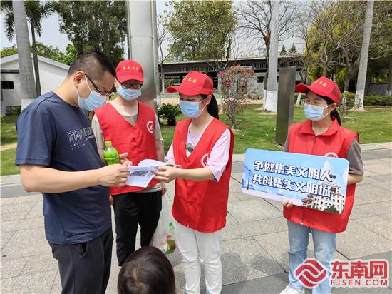為傳播文明旅游理念,展示文明風(fēng)采,倡導(dǎo)文明出行,23日上午,銀江路志愿服務(wù)驛站組織14名勤毅志愿服務(wù)隊(duì)大學(xué)生志愿者在集美園博苑景區(qū)開展以“文明旅游,遇見最美”為主題的文明實(shí)踐志愿服務(wù)活動(dòng)。