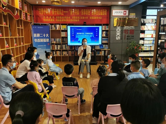 文明風(fēng)4月26日訊 4月23日是世界讀書日,當(dāng)天下午,安溪縣婦聯(lián)、安溪縣第三實驗小學(xué)、新華發(fā)行集團(tuán)安溪分公司聯(lián)合開展了“親子共讀·悅享綠色”故事會公益活動。