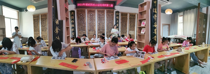 在浦城縣新時代文明實踐中心非遺傳承培訓(xùn)基地舉辦浦城剪紙公益培訓(xùn)班(剪花嫂剪紙坊供圖)