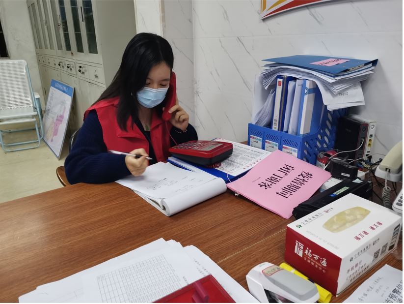 曾彤彤在撥打流調(diào)電話。寧德市九都鎮(zhèn)人民政府 供圖