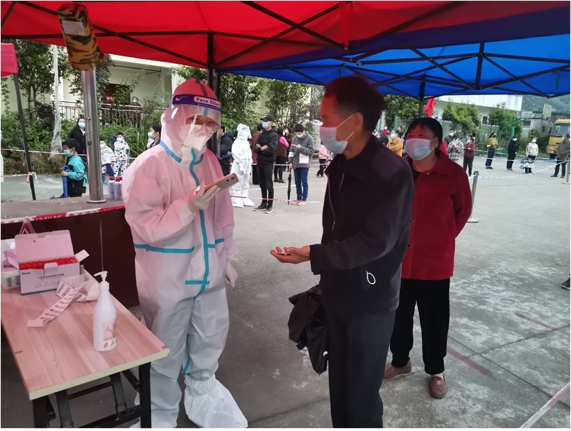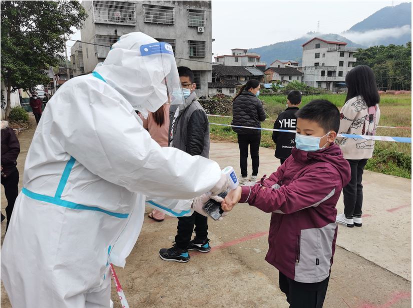 陳長榮在做全員核酸志愿者,負(fù)責(zé)測溫。寧德市九都鎮(zhèn)人民政府 供圖