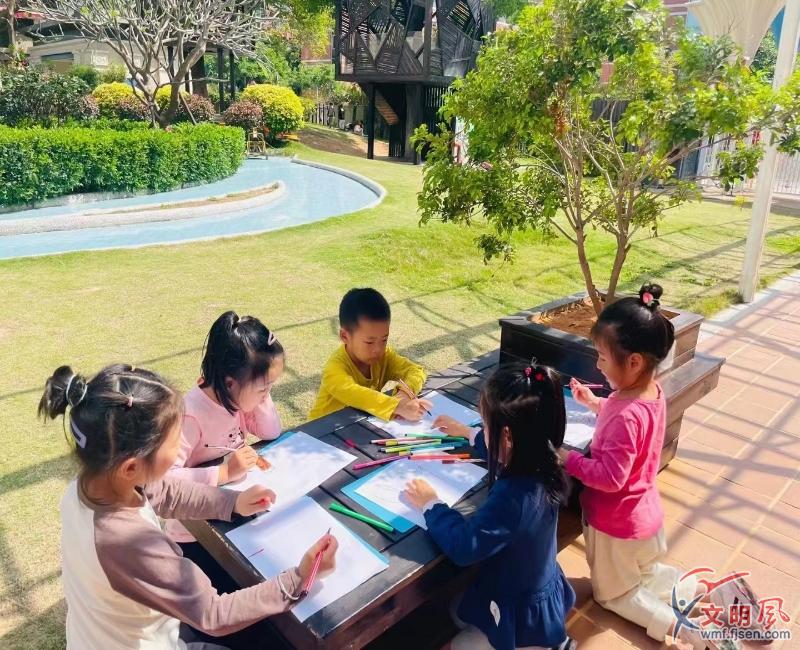 孩子們在大自然中創(chuàng)作。思明紅黃藍(lán)幼兒園供圖