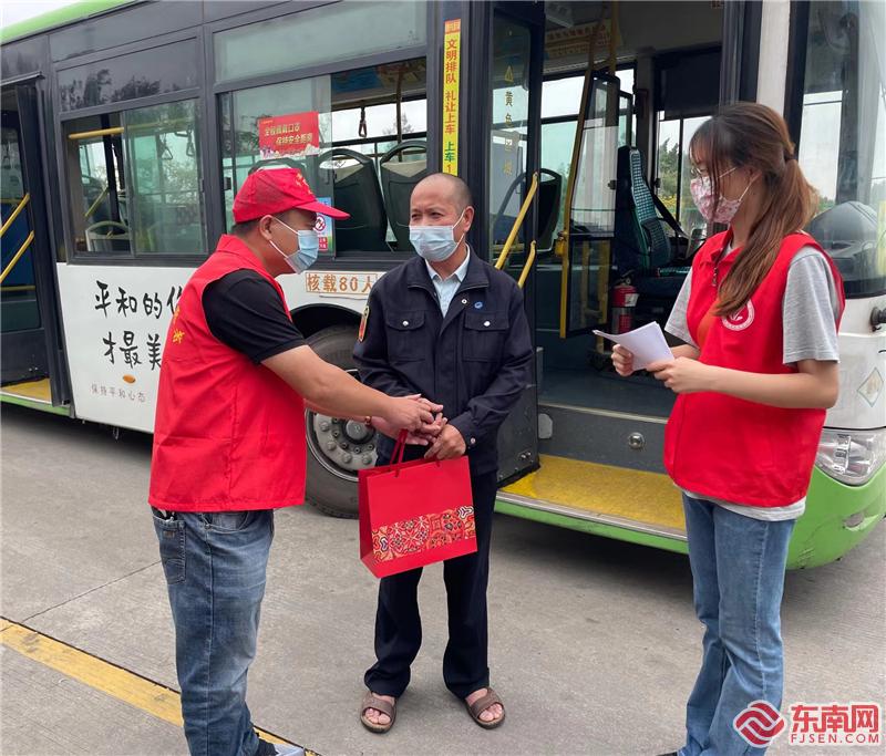 志愿者慰問到站公交駕駛員(集美·誠毅志愿者聯(lián)盟供圖)