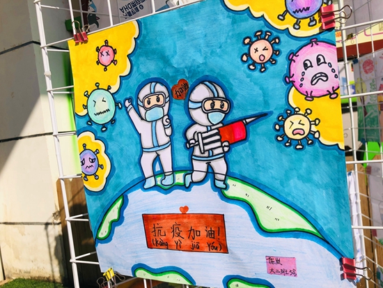 一張張生動形象的繪畫作品,清晰的地展現(xiàn)出孩子們對疫情的認識,也展現(xiàn)了孩子面對病毒來襲的勇敢和堅強,以及對白衣天使以及一線工作人員的敬仰之情……