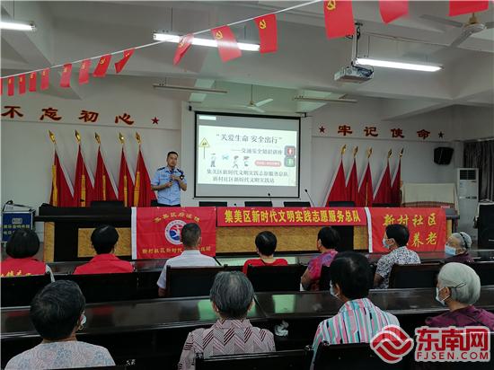 文明風(fēng)5月6日訊(程金蘭)安全駕駛,文明出行,關(guān)乎人民群眾生命安全和家庭幸福。為提高居民的交通安全防范意識(shí),養(yǎng)成文明交通行為習(xí)慣,4月28日上午,在廈門市集美區(qū)新村社區(qū)黨總支、關(guān)工委的指導(dǎo)下,新村社區(qū)新時(shí)代文明實(shí)踐站邀請社區(qū)民警林佳和進(jìn)社區(qū)開展“關(guān)愛生命 安全出行”交通安全知識(shí)講座,吸引社區(qū)40余位居民參加。
