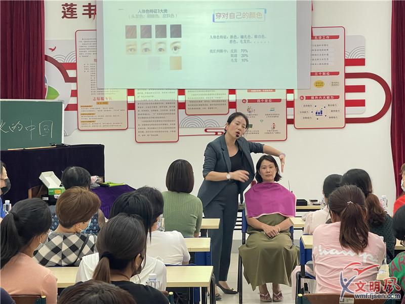 化妝老師挑選一名媽媽進(jìn)行色彩穿搭示范教學(xué)。(楊金鎖 供圖)