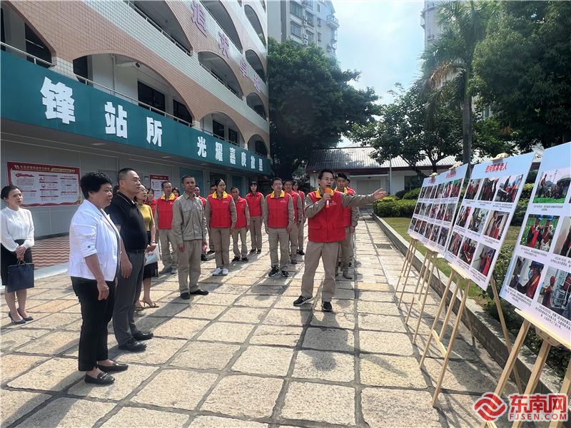 僑英供電所支部書記阮詩(shī)峰向與會(huì)嘉賓介紹隊(duì)伍志愿服務(wù)風(fēng)采。東南網(wǎng)記者 李霖 攝