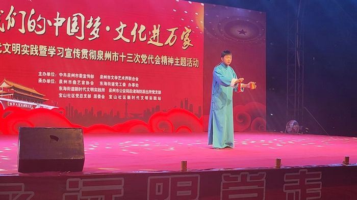 南安六中黃桂皇同學(xué)在文化進萬家活動舞臺上表演快板
