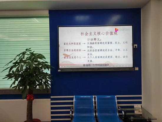 通過學(xué)習(xí)強(qiáng)國平臺(tái)推送社會(huì)主義核心價(jià)值觀相關(guān)內(nèi)容、在路政大廳顯示屏播放社會(huì)主義核心價(jià)值觀公益廣告等方式,開展理論宣傳教育活動(dòng),引導(dǎo)廣大干部職工堅(jiān)定理想信念,聽黨話、跟黨走。