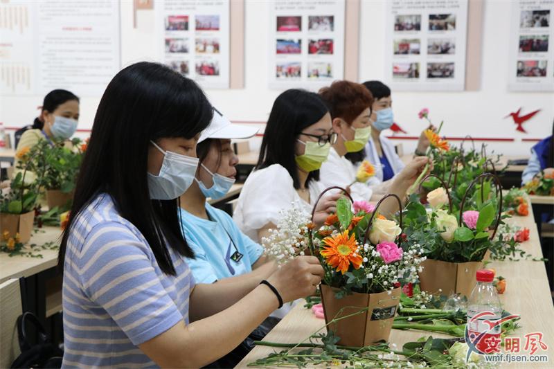 轄區(qū)媽媽們參與插花活動(dòng)。(練春梅 攝)