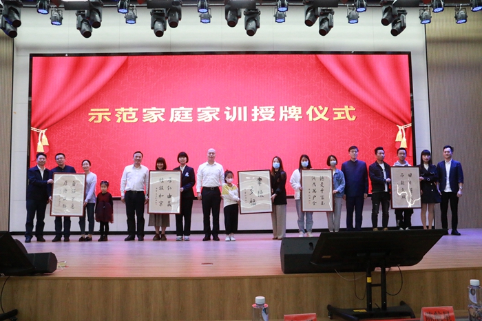 活動(dòng)期間,還舉行了長樂區(qū)首批“示范家庭家訓(xùn)授牌”儀式,與會(huì)領(lǐng)導(dǎo)為首批10個(gè)優(yōu)秀家庭代表頒發(fā)“家訓(xùn)牌匾”