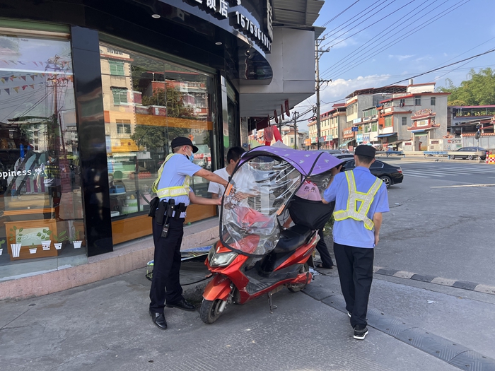 此次行動中,南靖縣公安局交警大隊立足創(chuàng)城主城區(qū)交通實際,采取定點執(zhí)勤與流動巡邏相結合的勤務模式,執(zhí)勤人員在摩托車、電動車出入較多的中山路、大橋頭、三市紅綠燈等重點路段開展整治,對非法加裝遮陽傘的摩托車、電動車進行攔截,現(xiàn)場拆除;并堅持“教育為主、處罰為輔”的原則,對群眾進行批評教育,結合轄區(qū)因加裝遮陽傘發(fā)生的典型事故案例,耐心講解加裝遮陽傘會存在遮擋視線、重心不穩(wěn)、容易發(fā)生側翻等嚴重危害,提醒他們要自覺遵守交通法規(guī),堅決杜絕“非法加裝遮陽傘”行為,共同維護轄區(qū)道路交通安全,為助力創(chuàng)城貢獻智慧和力量。