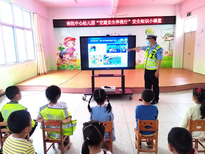 為進一步推進平安校園建設,提高幼兒園交通安全意識,促進校園交通安全,近日,南靖縣公安局南坑派出所深入轄區(qū)中心幼兒園開展“交通安全伴我行”安全知識小課堂教育活動,為幼兒園小朋友送上一堂別開生面的交通安全課。