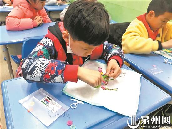 刻紙、花燈、金蒼繡、珠繡、木偶制作……泉州市通政中心小學(xué)的勞動(dòng)教育不止有自我服務(wù)型,還將傳統(tǒng)文化元素貫穿在勞動(dòng)課程中,賦予勞動(dòng)教育新的內(nèi)涵。