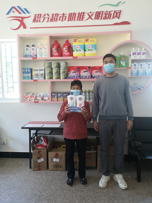 在江田鎮(zhèn)克明村文明超市內(nèi),村民用積分兌換禮品(長樂區(qū)委文明辦供圖)