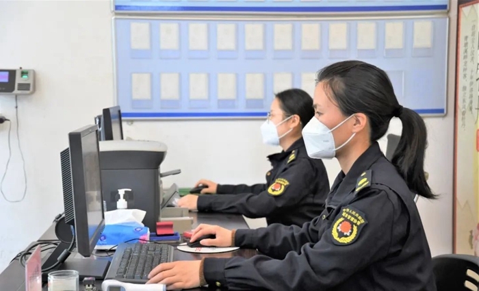 辦公室內(nèi),工作人員對巡查發(fā)現(xiàn)問題產(chǎn)生的案件進行處理。陳秋霞攝