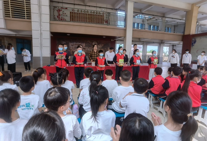 各主承辦單位領(lǐng)導(dǎo)通過授書儀式,將圖書送到亭江第二中心小學(xué)的學(xué)生們手中,為學(xué)生們搭建起一座了解世界的橋梁。