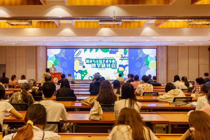 5月20日上午,福建師范大學黨委副書記陳曉紅在聯(lián)結(jié)·融合·創(chuàng)新:新文科背景下的播音與主持藝術(shù)專業(yè)教學研討會上致辭 陳思琳/攝