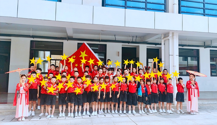 連振東校長發(fā)表開幕致辭,一場精彩紛呈的經(jīng)典誦讀活動拉開序幕。“愛國經(jīng)典潤心靈,黨的光輝照我心”。三年級的《中華少年》《盛世中國》《祖國是媽媽》《讀中國》《中華頌》……一篇篇經(jīng)典在耳畔響起,一幕幕歷史畫面在眼前展現(xiàn),同學(xué)們抑揚頓挫,慷慨激昂,在朗誦中銘記歷史,傳承精神,用響亮的聲音、赤誠的情感表達(dá)了對黨的熱愛和對祖國的祝福。