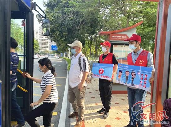 文明風(fēng)5月25日訊(夏菁 童心悅)為了營造清新有序的乘車環(huán)境、文明有禮的乘車氛圍、安靜舒適的乘車體驗,用良好乘車環(huán)境的“小空間”助力文明城市創(chuàng)建的“大文章”,近日,廈門翔安建發(fā)公司黨支部的黨員志愿者們“兵分兩路”,分別來到科技中學(xué)翔安校區(qū)站和林前站,開展“文明出行 清靜你我”主題志愿服務(wù)活動。