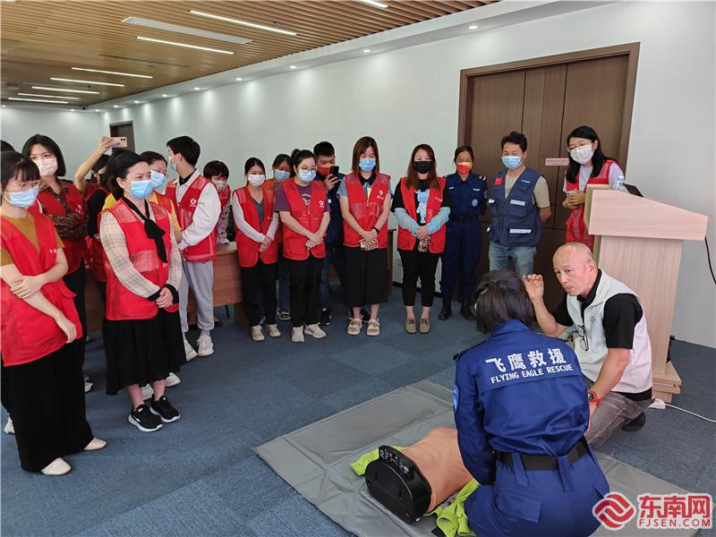 吳米納指導(dǎo)志愿者進(jìn)行心肺復(fù)蘇操作(集美·誠(chéng)毅志愿者聯(lián)盟供圖)
