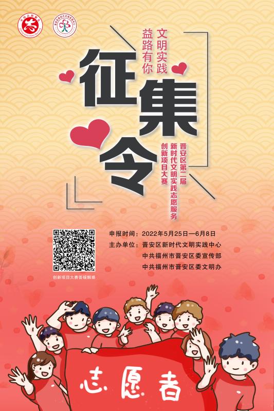 弘揚(yáng)志愿精神,聚力文明實(shí)踐。即日起,由晉安區(qū)新時代文明實(shí)踐中心、中共福州市晉安區(qū)委宣傳部、中共福州市晉安區(qū)委文明辦聯(lián)合主辦的第二屆新時代文明實(shí)踐志愿服務(wù)創(chuàng)新項(xiàng)目大賽開始啦!