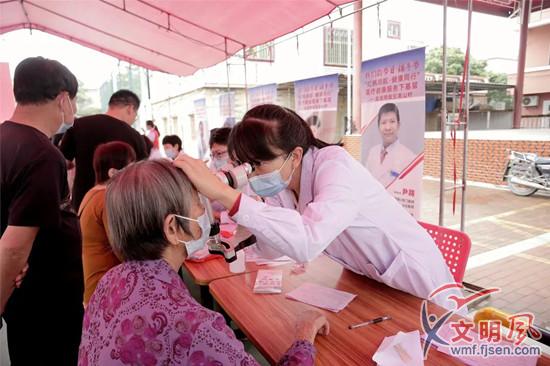 文明風(fēng)5月30日訊(夏菁 童心悅)5月28日上午,廈門(mén)市翔安區(qū)內(nèi)厝鎮(zhèn)美山村村部大院里聚集了不少村民群眾。原來(lái),這是一場(chǎng)“我們的節(jié)日·端午——'紅帆領(lǐng)航·健康同行'醫(yī)療健康服務(wù)下基層”活動(dòng)。來(lái)自廈門(mén)眼科中心、廈門(mén)大學(xué)附屬第一醫(yī)院、廈門(mén)大學(xué)附屬中山醫(yī)院等7家醫(yī)院的醫(yī)療專(zhuān)家參加了本次義診活動(dòng)。
