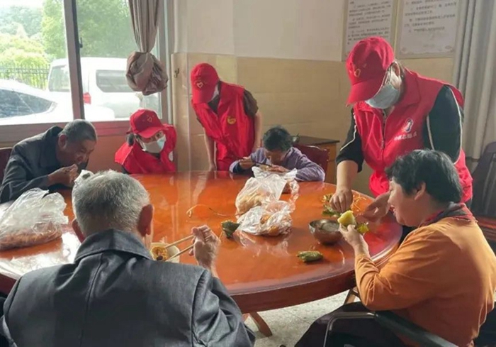 志愿者們拎著大包小包的粽子、糖棗、豆腐走進(jìn)敬老院,親手交到老人們手中并陪他們聊家常,城區(qū)社區(qū)衛(wèi)生服務(wù)中心的醫(yī)護(hù)人員為老人們測(cè)量血壓、血糖,詢問(wèn)其日常飲食起居及目前身體狀況,叮囑老人在逐漸炎熱的夏季里要做好防暑降溫。隨后,志愿者們還幫忙打掃了敬老院庭院內(nèi)的衛(wèi)生。