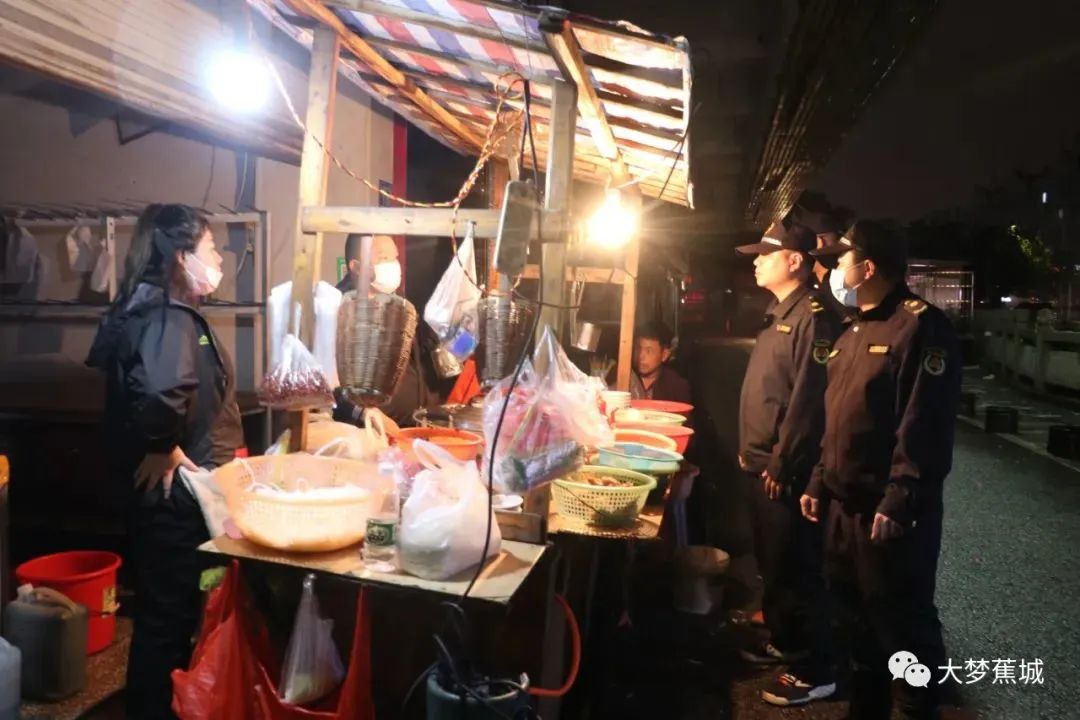 記者在現(xiàn)場看到,蕉城區(qū)城市管理局工作人員正在對東湖路進行巡查,并對零星存在問題的商戶進行勸導,責令其當場改正問題。
