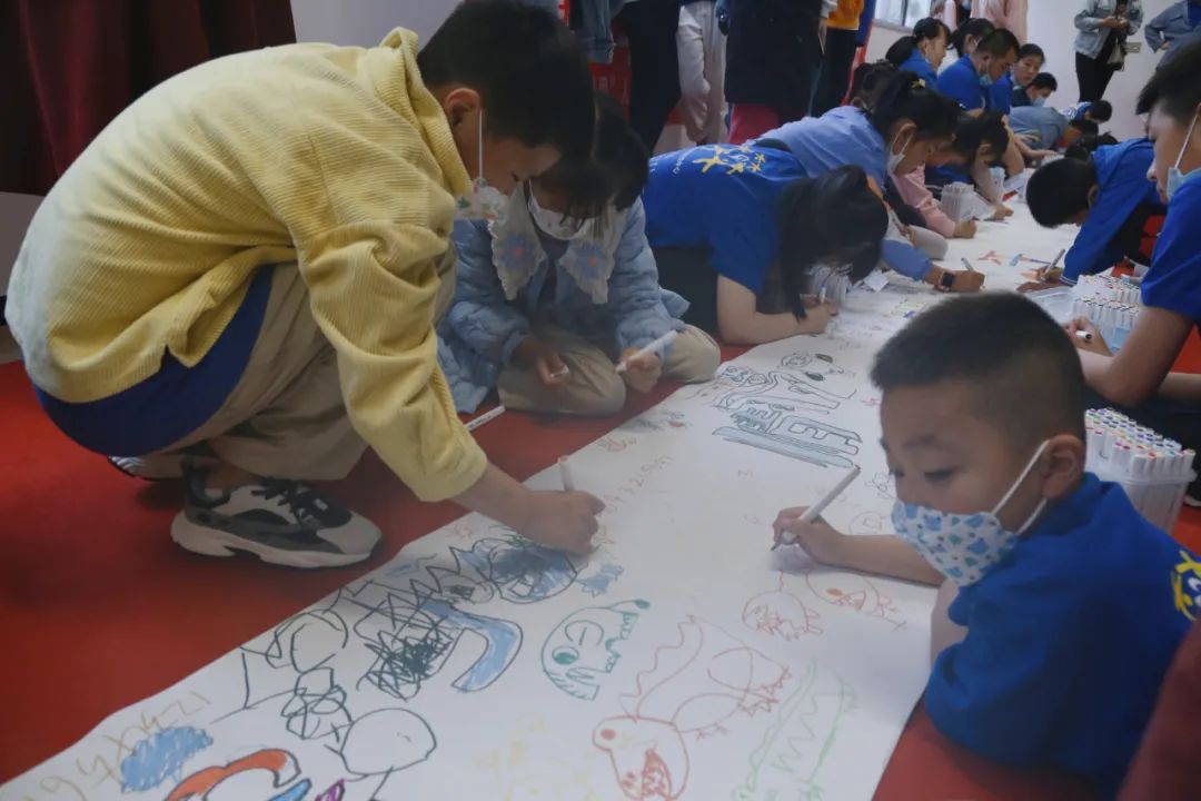 活動(dòng)在春風(fēng)里小區(qū)業(yè)主的愛(ài)心禮物贈(zèng)送儀式中拉開(kāi)序幕,隨后,10戶愛(ài)心家庭和30組自閉癥孩子以“家園”為主題,通過(guò)“藍(lán)天、白云、太陽(yáng)、愛(ài)心”等元素,與志愿者家庭攜手共同繪制一幅百米畫卷藍(lán)圖。