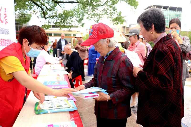 志愿者向群眾發(fā)放手冊 浦城縣融媒體中心供圖