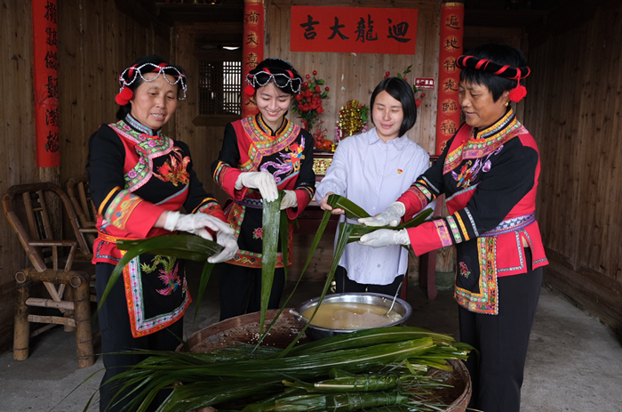楮坪鄉(xiāng)干部到畬族村開(kāi)展包粽子活動(dòng) 楮坪鄉(xiāng)供圖