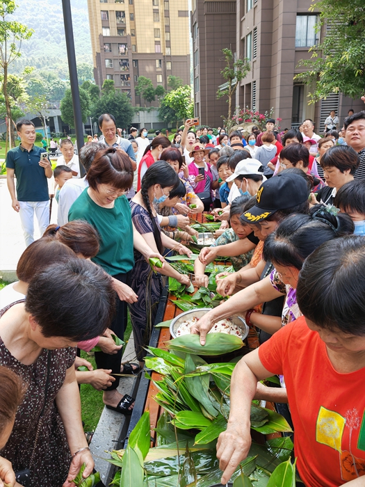 大家一邊包粽子,一邊嘮家常,一片融洽和諧