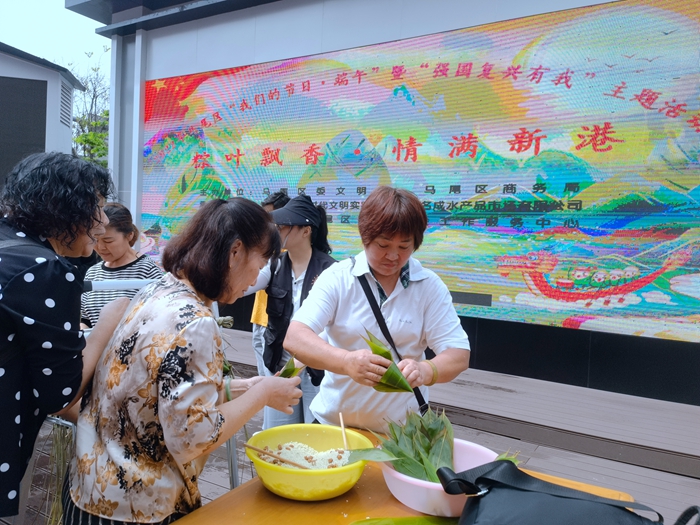 活動在“新港社區(qū)公益助老會”帶來的舞龍《中國龍》中拉開序幕,獨唱《一個美麗的傳說》、舞蹈《姑娘追追追》、合唱《游擊隊之歌》、《帽子舞》、時裝秀《幸福中國》等節(jié)目贏得陣陣掌聲。精彩的節(jié)目以外,還設置了包粽子比賽、端午知識問答等環(huán)節(jié),通過互動的方式,進一步讓群眾加深對端午節(jié)的認識。