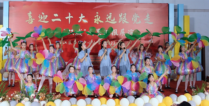 荷風(fēng)送香氣,竹露滴清響。為豐富未成年人節(jié)日生活,感受歡樂喜慶的節(jié)日氣氛,感悟美好生活的來之不易,堅定“永遠(yuǎn)跟黨走”的信心和決心,在六一兒童節(jié)來臨之際,大洋學(xué)校、涵江區(qū)實驗小學(xué)、三江口中心小學(xué)、白塘中心小學(xué)、江口中心小學(xué)等學(xué)校以“喜迎二十大,童心永向黨”為主題,組織開展“ 建功新時代 展現(xiàn)新作為”國旗下講話、“重溫紅色記憶”紅色主題紀(jì)念館參觀、“傳承紅色基因,爭做時代新人”主題征文演講、“我為祖國畫藍(lán)圖,別樣童趣迎六一”師生共繪繪畫長卷、“萌娃展風(fēng)采,唱跳迎六一”文藝匯演等豐富多彩的主題實踐活動。