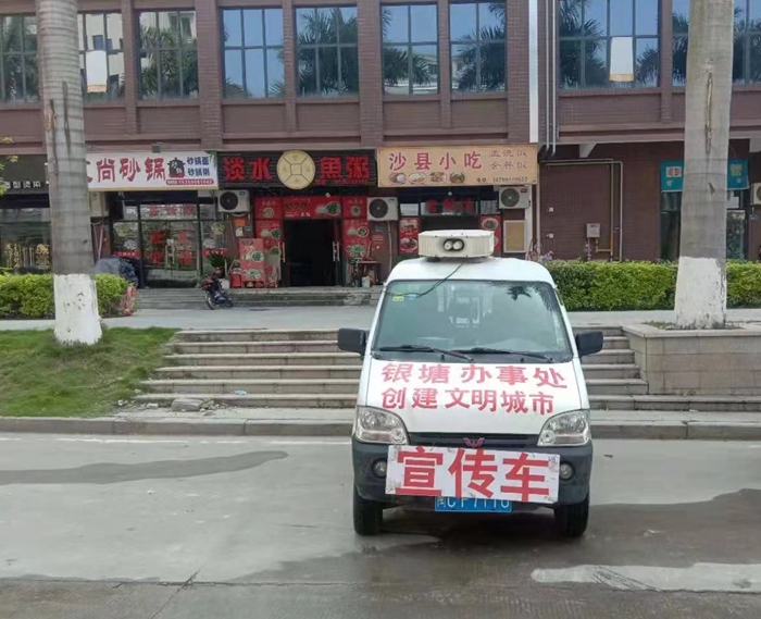 銀塘辦事處利用宣傳車循環(huán)播放“長泰創(chuàng)城三字經(jīng)”,加強(qiáng)創(chuàng)城氛圍宣傳 供圖:長泰區(qū)銀塘辦事處
