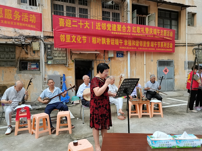 文泉社區(qū)“夕陽紅”志愿服務(wù)隊(duì)用通俗易懂,喜聞樂見薌劇紅歌傳唱文明新風(fēng)尚 供圖:長泰區(qū)武安鎮(zhèn)文泉社區(qū)