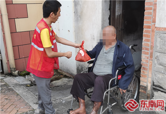 志愿者為村里高齡殘疾老人送粽子。(主辦方供圖)