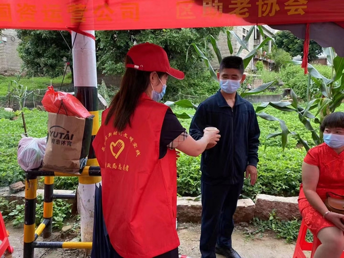 志愿者為等待考生的家長(zhǎng)送姜茶(泉港區(qū)財(cái)政局供圖)