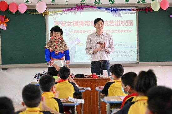 惠女銀腰帶制作技藝進(jìn)校園 鄭慧芬攝
