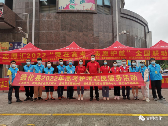 文明風(fēng)6月10日訊 6月7日,一年一度的高考拉開帷幕,為了給考生營造安全有序的考試環(huán)境,助力高考順利進(jìn)行,德化縣委文明辦、德化縣志愿者協(xié)會(huì)、德化縣蘭花草志愿服務(wù)中心、德化縣三明商會(huì)聯(lián)合開展“愛在高考 志愿護(hù)航”志愿服務(wù)活動(dòng),分別在德化一中、德化三中兩個(gè)考點(diǎn)設(shè)立愛心服務(wù)點(diǎn),為德化考生送上最貼心的服務(wù)。