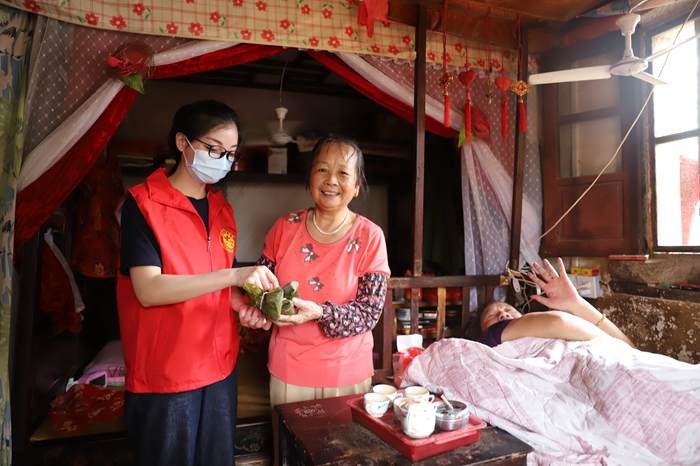 鄰里守望傳遞溫暖。端午期間,泉港區(qū)后龍鎮(zhèn)后墘村新時(shí)代文明實(shí)踐站志愿者深入村居群眾家中開(kāi)展“粽香情·關(guān)愛(ài)兒童”端午主題實(shí)踐活動(dòng),2022年后龍鎮(zhèn)“文明家庭”示范戶劉必南家庭熱心地向孩子們講解端午節(jié)的起源和風(fēng)俗習(xí)慣,感受傳統(tǒng)文化魅力。同時(shí),用嫻熟的技藝教孩子們包粽子,卷粽葉、放糯米餡料、捆扎,現(xiàn)場(chǎng)有條不紊、忙而不亂。孩子們躍躍欲試,折葉、盛料、壓實(shí)、裹葉、扎繩。泉港區(qū)前黃鎮(zhèn)前燒村開(kāi)展端午義診活動(dòng)。文明家庭成員以及志愿者參與到義診活動(dòng)中。他們協(xié)助醫(yī)生組織秩序及做好宣傳物品發(fā)放,為需要的村民提供幫助。后張村、鳳山村、鳳北村開(kāi)展鄰里守望活動(dòng),在端午佳節(jié),看望慰問(wèn)貧困家庭、空巢老人、殘疾人,與其座談交流,為他們送去端午粽子、大米、花生油、等生活物資,并送上節(jié)日祝福,陪伴他們共度端午佳節(jié)。峰尾鎮(zhèn)以峰尾鎮(zhèn)新時(shí)代文明實(shí)踐中心為載體,持續(xù)開(kāi)展為民辦實(shí)事、好事活動(dòng)。組織志愿者在社工站集中包粽子后,帶著手工包好的粽子和慰問(wèn)品走訪慰問(wèn)周邊貧困戶10戶,并慰問(wèn)全國(guó)文明家庭連美華家庭,為他們送去節(jié)日祝福,幫助解決實(shí)際生產(chǎn)生活困難,陪伴共度端午佳節(jié)。同時(shí),慰問(wèn)了轄區(qū)內(nèi)孤兒、殘障人群、五保戶群體等。涂嶺鎮(zhèn)組織新時(shí)代文明實(shí)踐所組織志愿者及文明家庭開(kāi)展“濃情端午·鄰里守望”活動(dòng),將慰問(wèn)品及粽子發(fā)到孤寡老人、留守兒童的家中,并致以端午安康的溫暖祝福,傳遞黨的溫暖,送去節(jié)日的祝福。