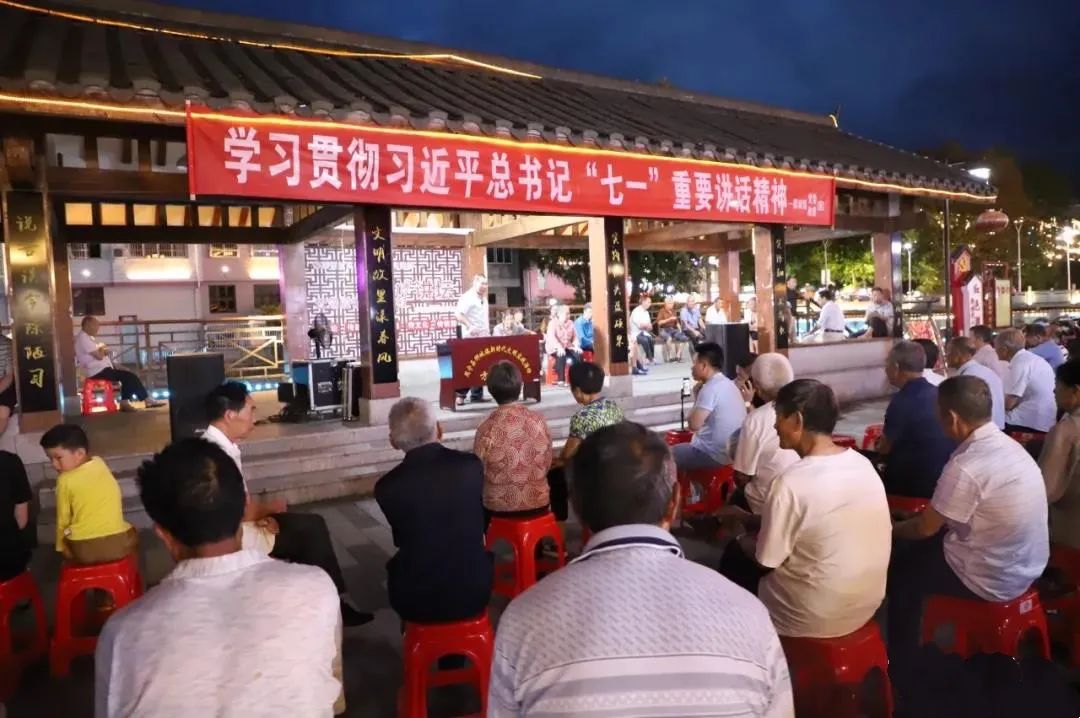 獅城鎮(zhèn)城西社區(qū)新時代文明實踐站用“方言評書”的形式宣講習總書記“七一”重要講話精神。陳晨旭 攝