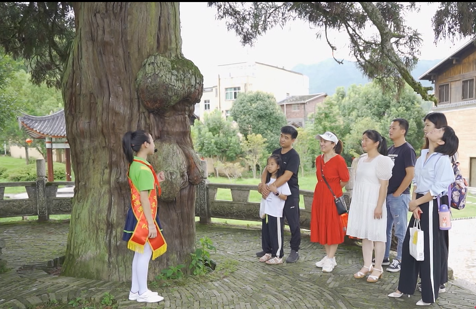 紅領巾小導游在鯉魚溪景區(qū)給游客義務講解。周寧縣文明辦 供圖