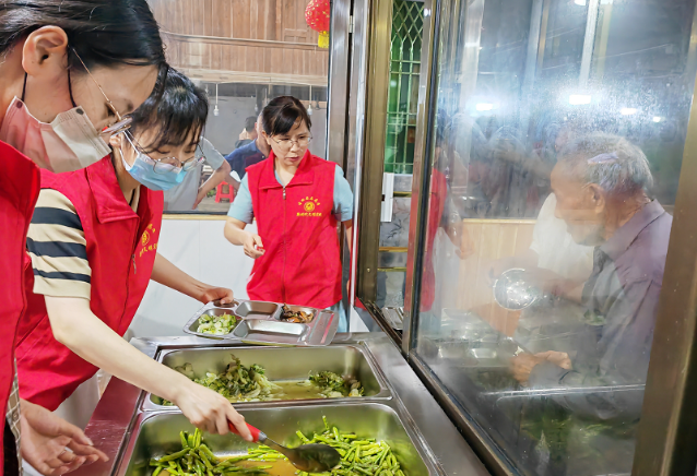 志愿者為老人打飯。古田縣委文明辦 供圖